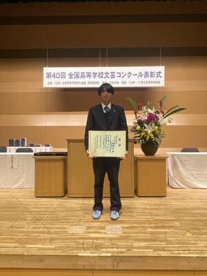 高校生の文芸大会の最高峰「第40回全国高等学校文芸コンクール」の入賞作品が決まり、本校からは詩部門で2学年 小幡楠旺(おばた くすおう)さんが優良賞となりました。